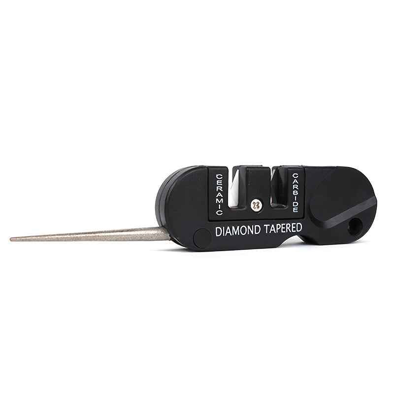 [Multi-Tool Knife Sharpener] 4-in-1 Multi-Tool Outdoor Knife Sharpener & Sharpening Tool | Lightweight Stainless Steel Clip-On Design, Ambidextrous, for Camping, Hiking, Fishing, DIY Projects, Camping Accessories, Sleek Metal black tool*1pcs